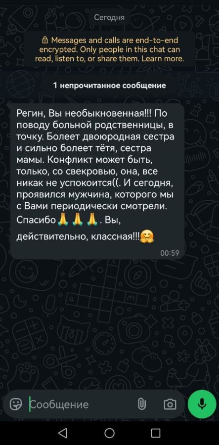 Мои Медиумические способности позволяют мне установить связь с вашими предками, ангелами-хранителями и другими духовными сущностями, которые могут предложить вам мудрость, поддержку и наставления в трудные времена.